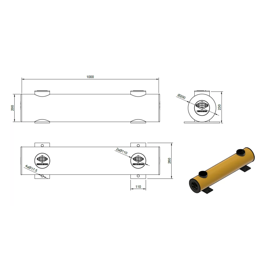 Минимална дължина: 500 mm / Максимална дължина: 3000 mm – Ø 200 mm